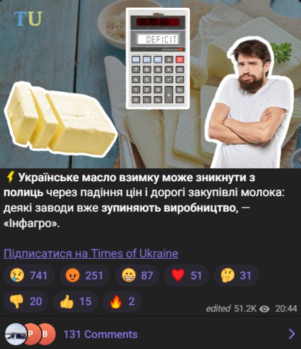 В результаті кілька заводів уже скоротили випуск масла або тимчасово припинили його. Жовтневий випуск виявився нижчим за торішній рівень, чого не траплялося вже давно.